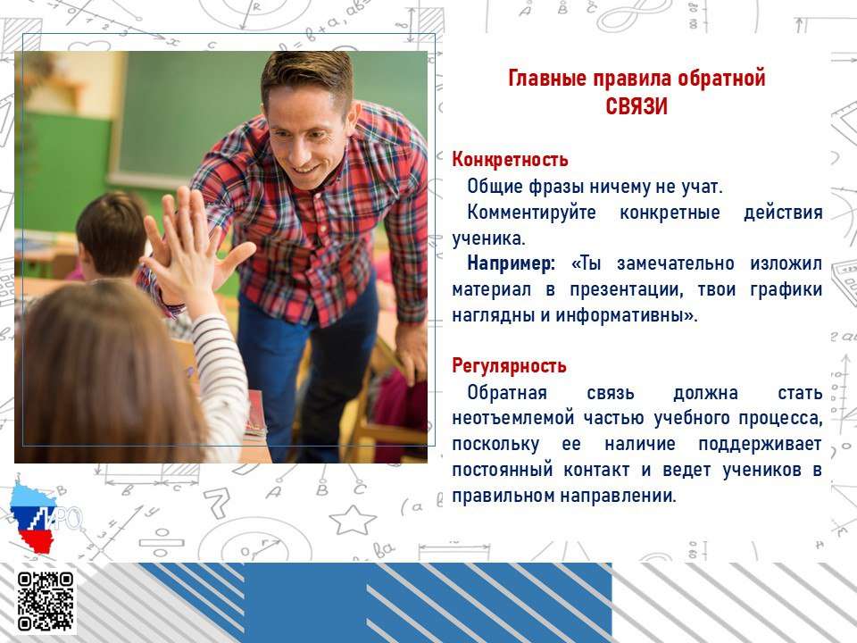 Новости От похвалы к развитию: секреты правильной обратной связи от lrcdpo 25.08.2025 25.08.2025 2 мин. 117 💬 Обратная связь — мощный инструмент, способный значительно повысить эффективность образовательного процесса. Но как правильно её давать, чтобы ученики действительно развивались и росли? 👆Читайте в нашей статье! Поделиться Назад Федеральный институт педагогических измерений Далее Онлайн-интенсив для педагогов: «Искусственный интеллект в работе педагога» Похожие посты Конгресс «Атомная инициатива: Конгресс будущих специалистов». Карьерный форум «День энергетика 2025» 08.10.2025 Всероссийская просветительская эстафета «Мои финансы» 04.09.2025 Всероссийская олимпиада школьников «Высшая проба»: шанс проявить себя 04.09.2025 Конкурс «Лучший школьный педагог-библиотекарь России» 03.09.2025 Ключевые инициативы «Российского общества «Знание» в Луганской Народной Республике 28.08.2025 Онлайн-уроки Банка России 28.08.2025